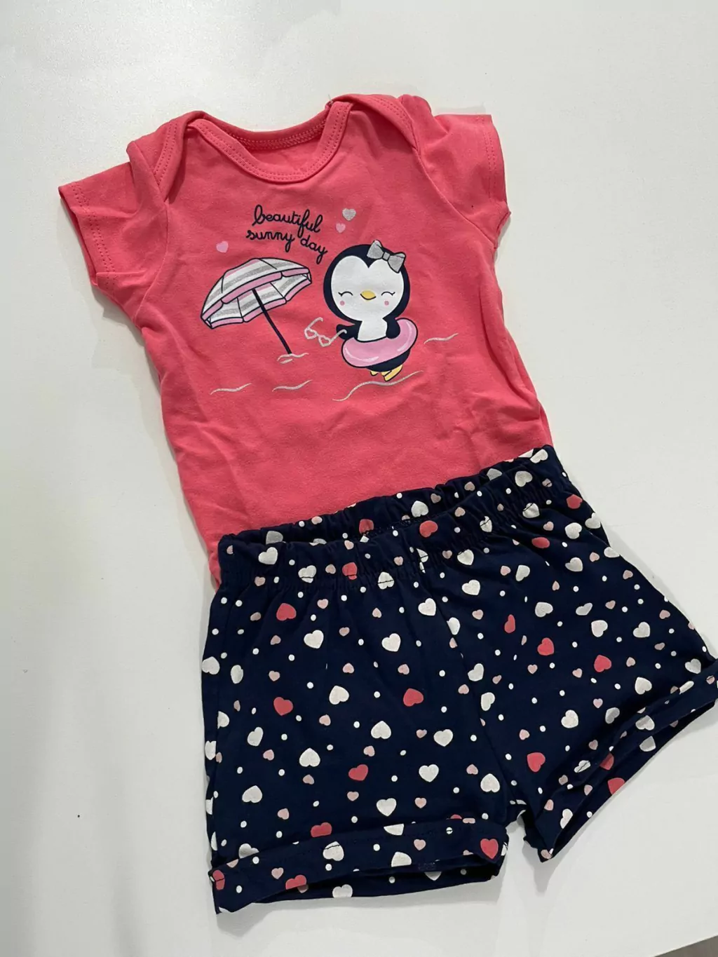 Conjunto Brandili Baby Body Shorts Coração