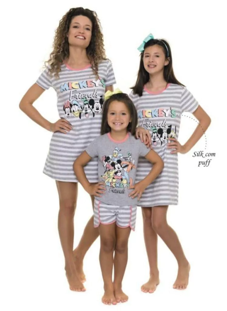 Pijama Evanilda Shorts Infantil Filha Turma do Mickey Cinza