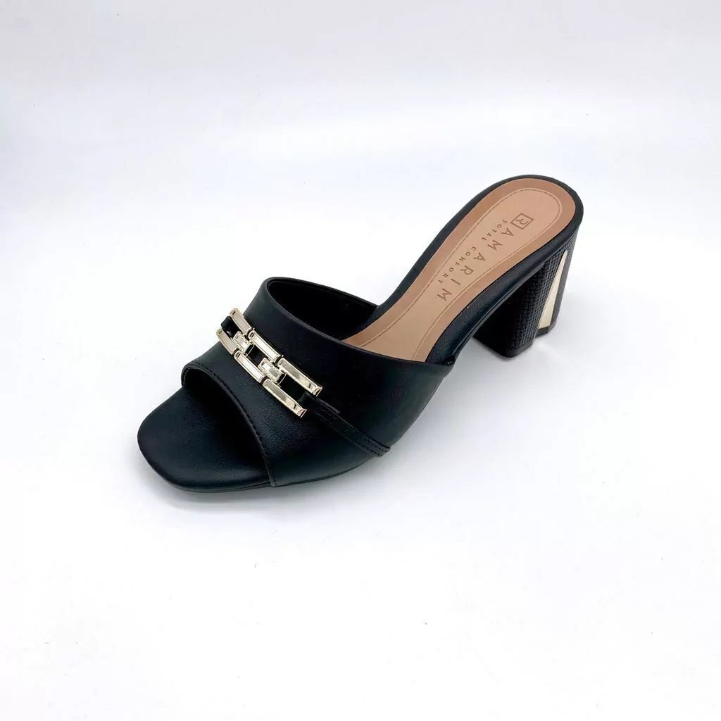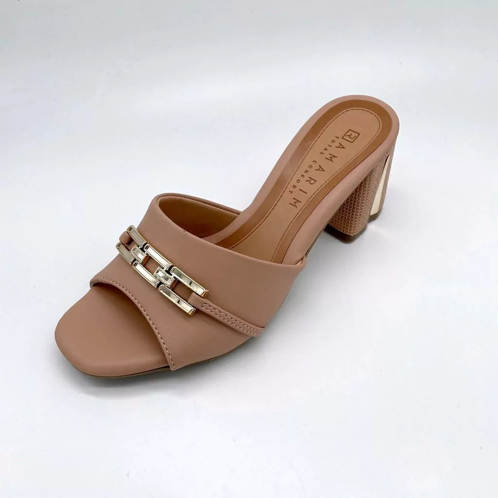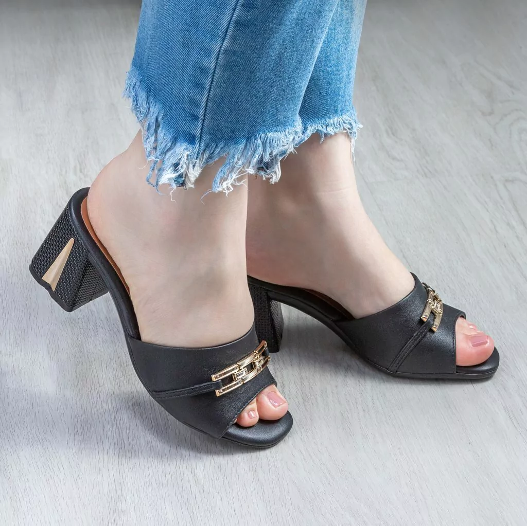 Apresenta em seu cabedal um detalhe com uma corrente dourada, proporcionando um toque charmoso ao calçado. Sua palmilha macia garante conforto e comodidade aos pés. O salto grosso médio oferece estabilidade e um toque exclusivo.