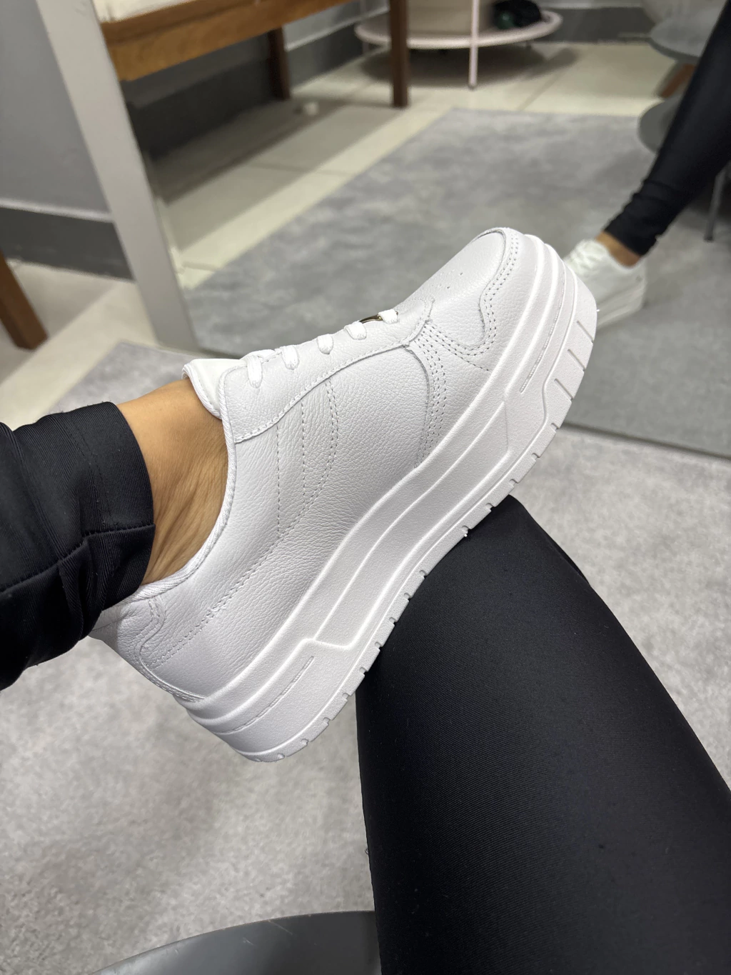 Tênis Dakota Couro Legítimo Branco Solado Alto: Elegância e Conforto em Cada Passo!