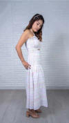 Deleite-se com a doçura do nosso encantador vestido Chocoleite. Em um design longo com camadas nas tonalidades rosa, branco e verde, esta peça é uma expressão elegante e suave. Perfeito para adicionar um toque de encanto ao seu estilo.