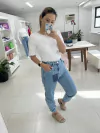Calça Caramella Mom Branca Sarja