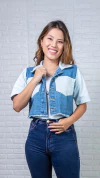 Cropped Jaqueta Caramella Jeans Bicolor